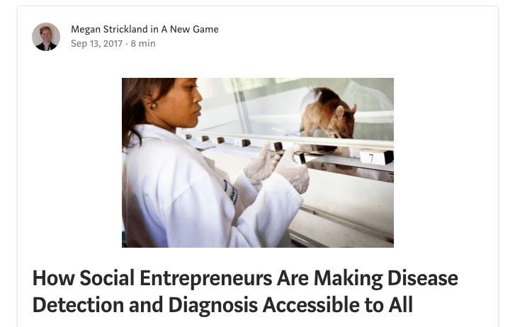 While at Ashoka in 2017, I was lead author of an article series published on Medium that explored social entrepreneurs’ innovative approaches to patient-centered healthcare, which Ashoka called “Changemaker Health.” The series was part of a partnership with the German pharmaceutical company Boehringer Ingelheim.
