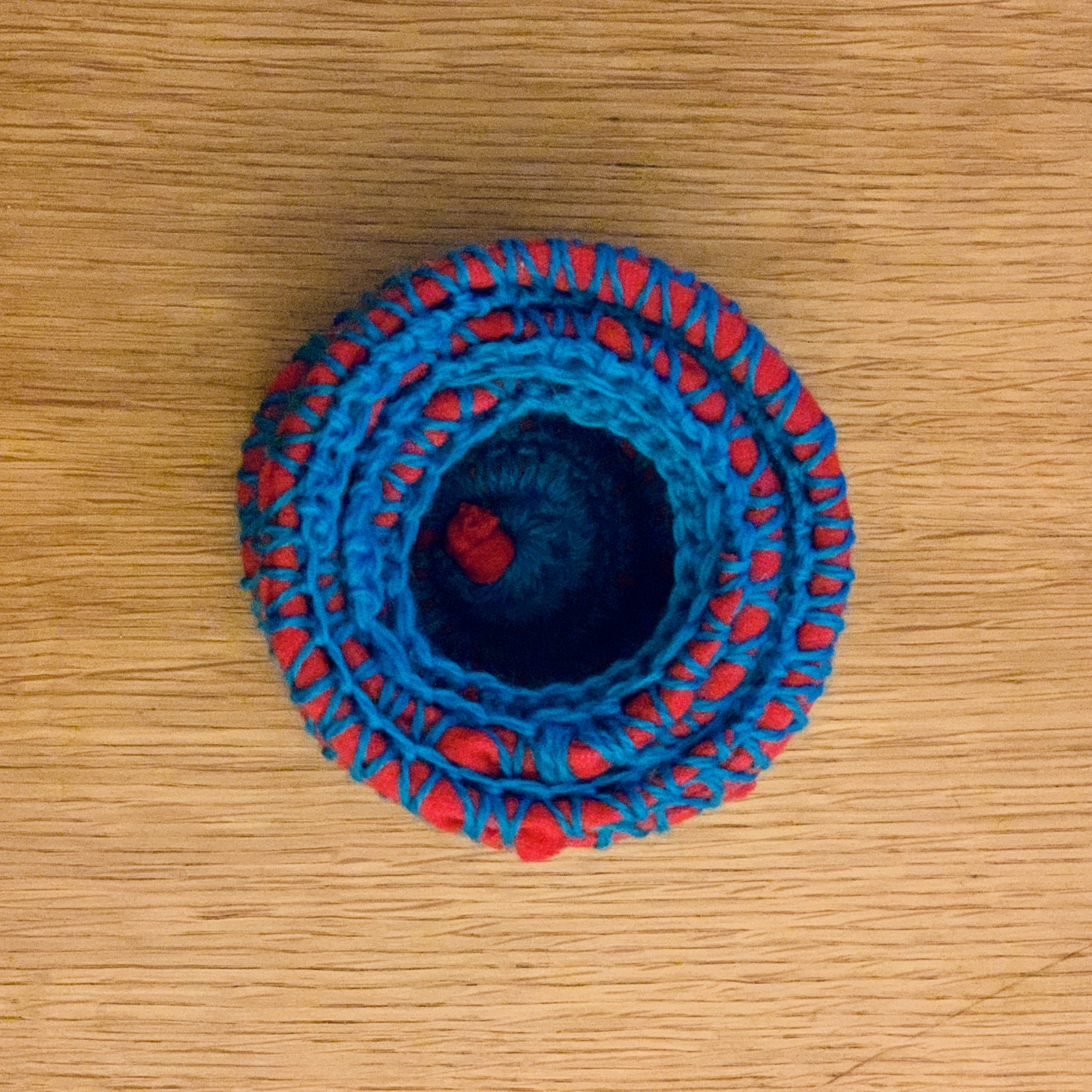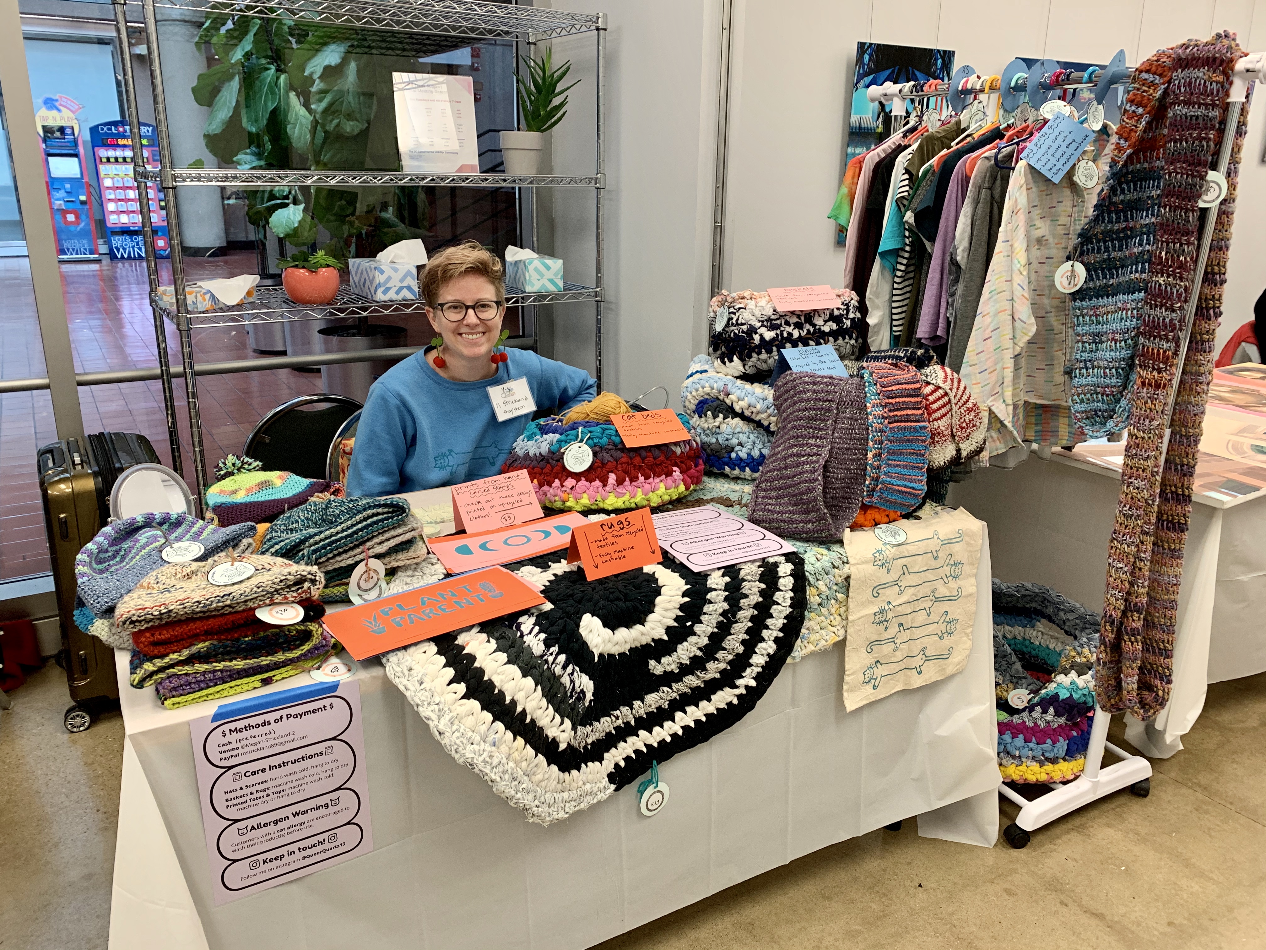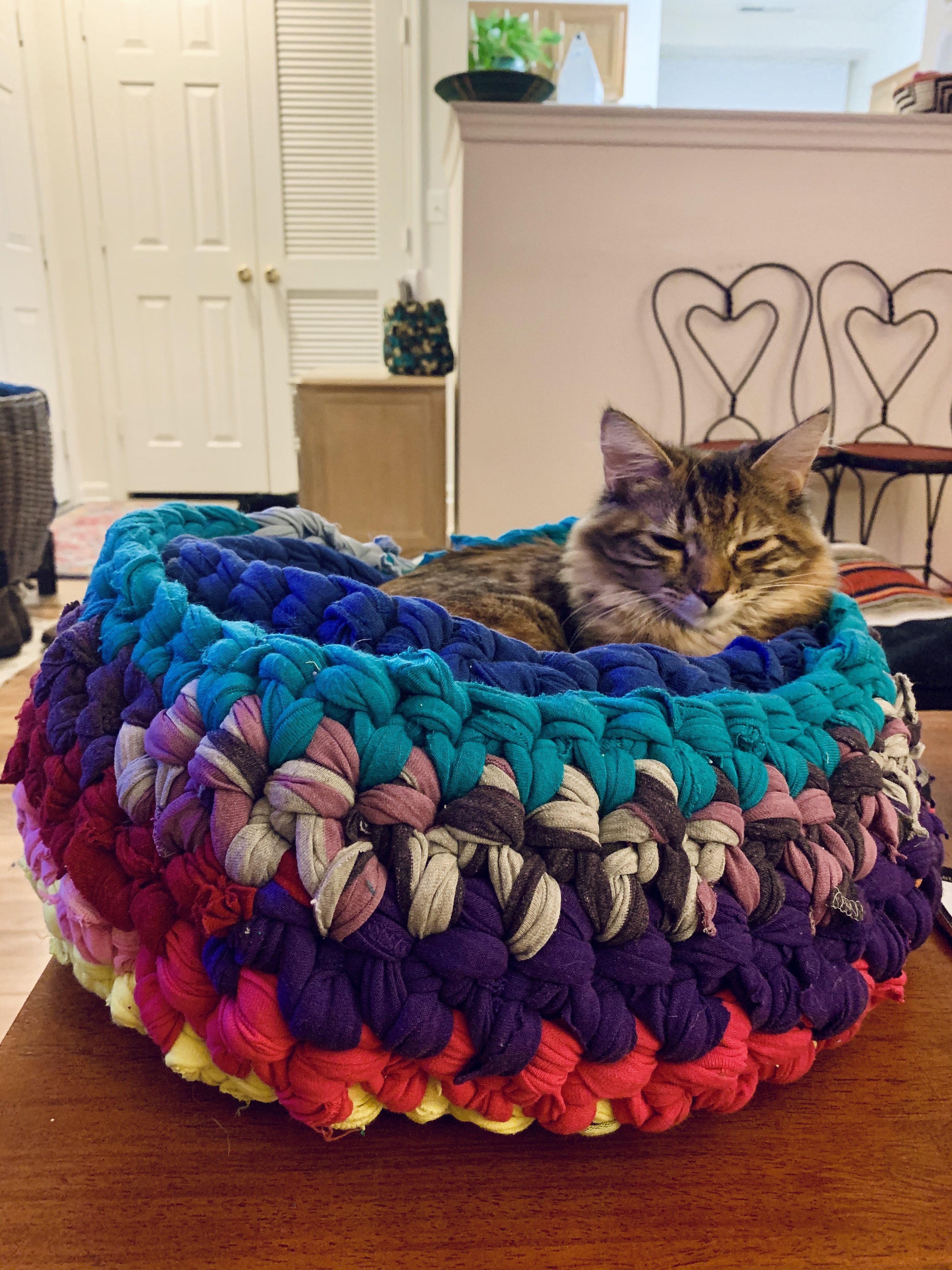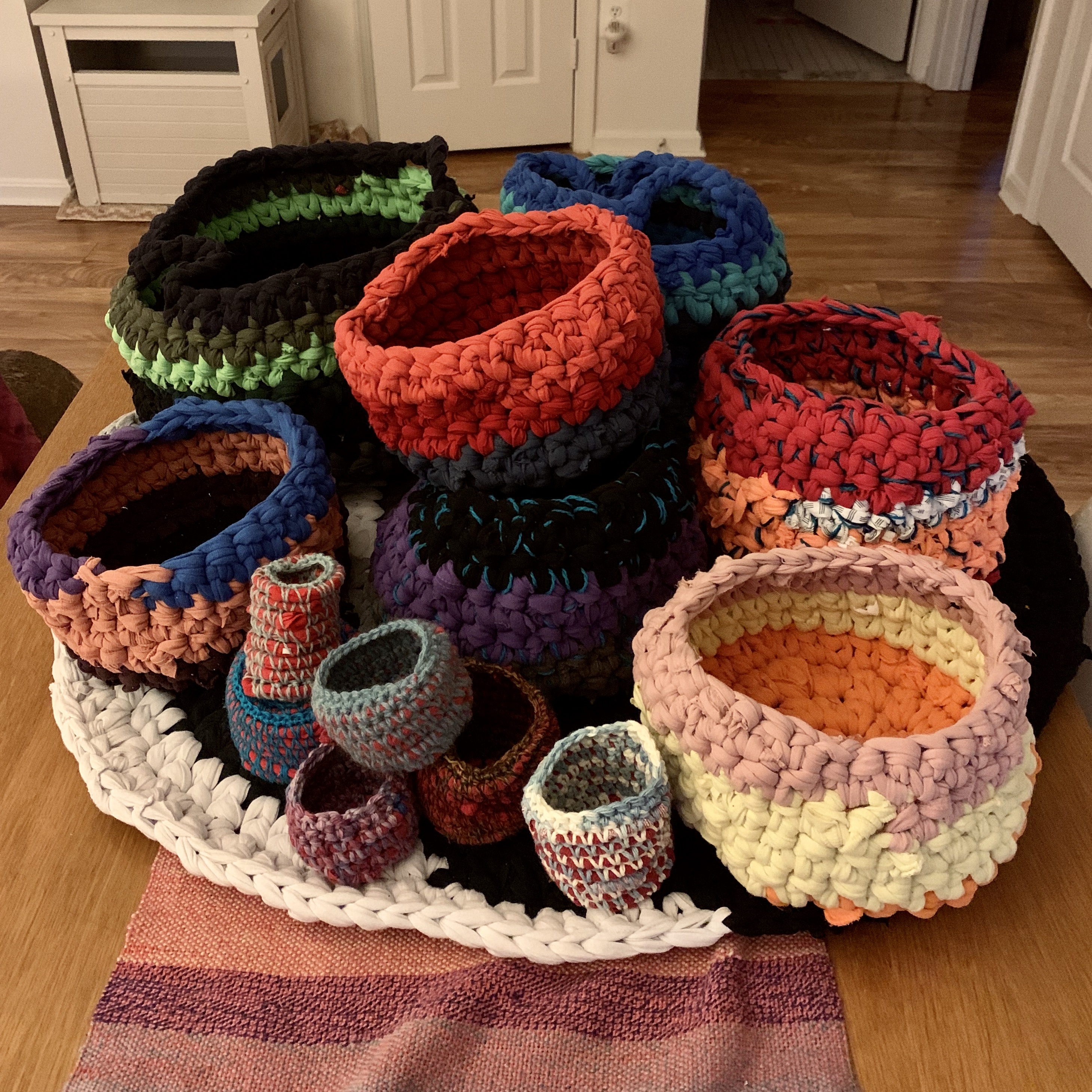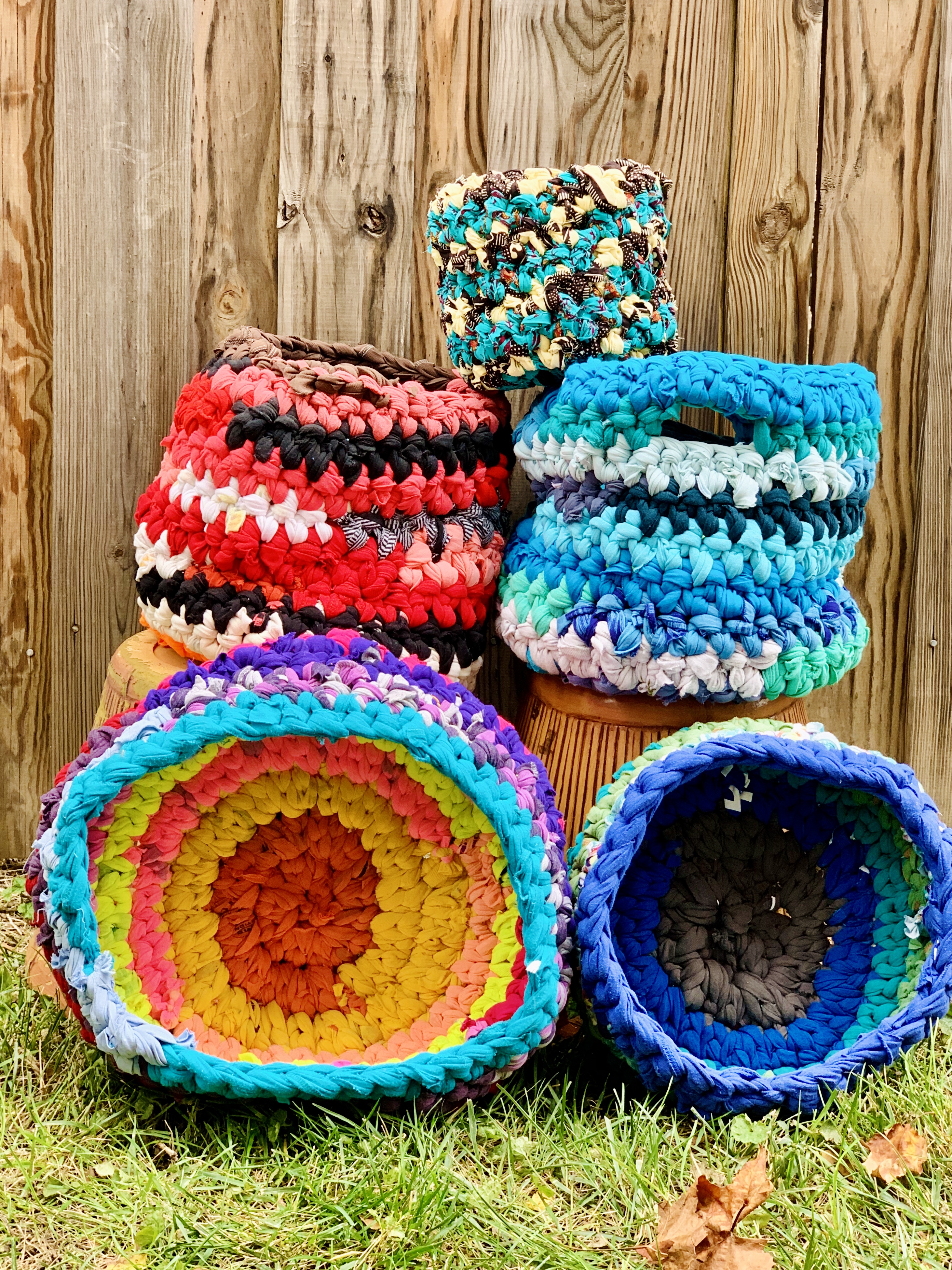 As much as possible, they try to use upcycled raw materials to create their products. They divert unwanted textiles from landfills by transforming them into crocheted home goods such as pet beds, rugs, and baskets. Milo also hand stamps, screen prints, and re-works upcycled clothing items.