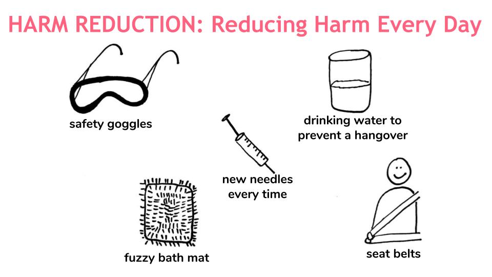 I used a video of simple sketches on Post-it notes to introduce my graduate thesis presentation. I relied on the simplicity of line drawings to break down my complex topic–the power inequities that surround many nonprofit organizations–for a general audience.I created this sketch as part of an informal presentation on the harm reduction work that HIPS–a direct service provider organization–does in Washington, DC.